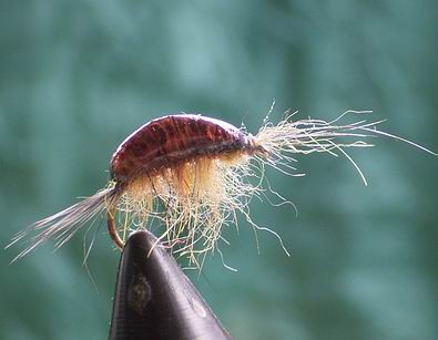 Nicht so sehr meine Sache, sie geben aber natürlich eine gute Form vor. Ich habe alles mögliche damit ausprobiert, das Umwickeln der Körper mit Dubbing und Scud-back etc. scheint mir aber einfach zu dick und voluminös (so schaut ein Flohkrebs einfach nicht aus!). Das beste ist wohl, den Körper als diesen auch zu verwenden, ggf. zu bemalen oder mit BugBond (UV loon o.ä.) zu überziehen. Also: Grundwicklung, Schwänzchen, Rippung aus Draht oder Monifil, Hechel aus Hahn / Henne / Emu / Hasengrannen oder Dubbing, ggf. Fühler, Runterbürsten, Körper mit Sekundenkleber fixieren, Rippen, abbinden, Ausbürsten. Einfach, schnell, effektiv, (etwas langweilig). |