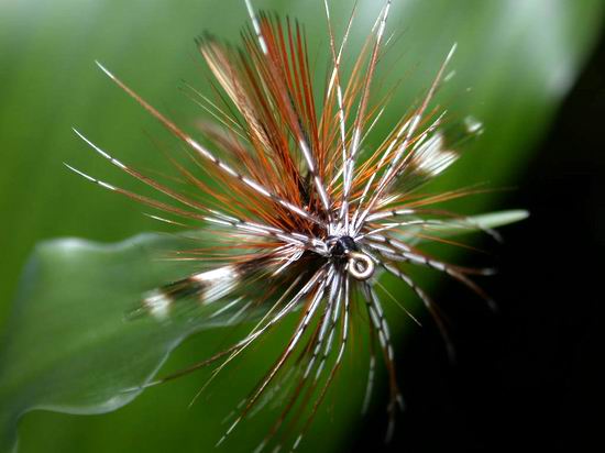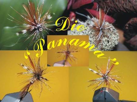 Die "Panama", eine für mich wunderschöne und auch fängige Fliege. Ein Anfänger sollte sie sich allerdings nicht als "Lehrstück" aussuchen, sie könnte ihm den Spass am künftigen Binden nehmen, da sie doch einige Tücken hat. Für einen geübten Binder dürfte sie allerdings keine großen Probleme darstellen. |