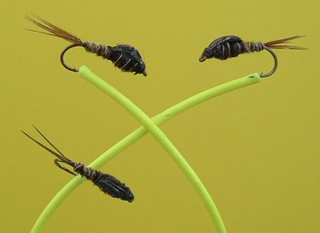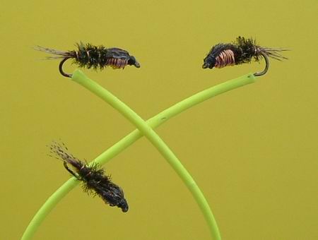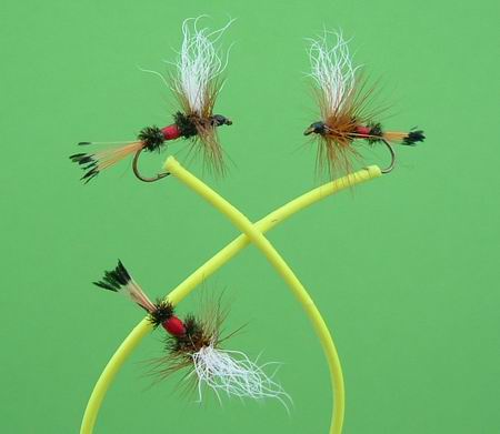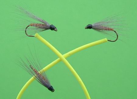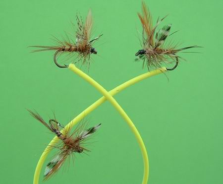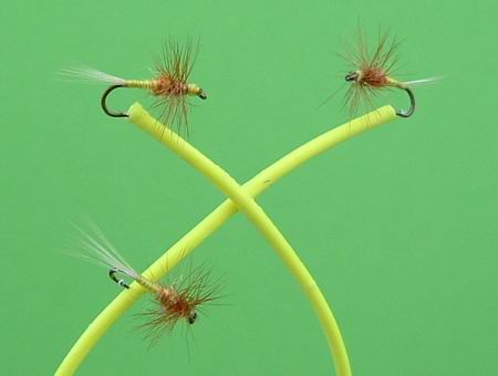 Typus A von Sawyer Haken Nr. 16, 15, 14 Fibern: Fasanenhahn. Beschwerung mit ganz dünnem Kupferdraht. |