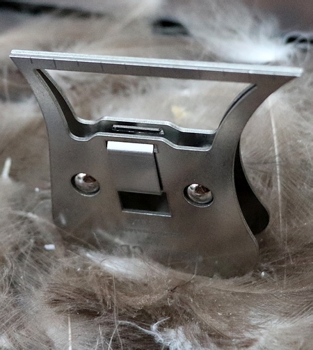 • Hochfeste, blendfreie Ausführung • Top Qualität, gesamte Klemme aus nichtrostendem Stahl, sehr präzise gefertigt • Hochwertige Gelenklagerung über 2 Stahlkugeln • Hohe Klemmkraft durch robuste Stahfeder • Offener Klemmbereich (Fenster) • Material kann direkt aus dem Fell aufgenommen werden • Material kann durch den offenen Klemmbereich direkt zusammengeschoben werden • Lineal an den Klemmbacken, um Materialmenge immer gleich zu halten • Lose Haare können direkt vom Bindetisch aufgenommen werden Weitere Daten: