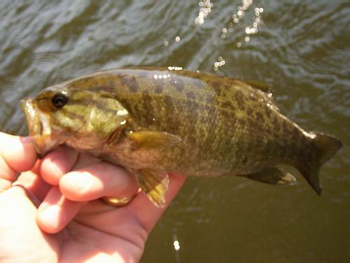 Auf was ich mich riesig gefreut habe, ist das Fliegenfischen auf Smallmouthbass. Ich habe viel im Internet darüber gelesen und konnte es nicht erwarten, diese Pirañas des Süsswassers an der Rute zu spüren. Als Köder diente eine Krebsimitation auf 6er Haken, die wunderbar im Wasser spielte und einen flüchtenden Flusskrebs imitierte. Es dauerte auch nicht lange, bis ein hungriger SMB anbiss. Und dann ging's ab wie die Feuerwehr! Das sind kleine Teufel, die wie von der Tarantel gestochen das Weite suchen. Nicht, das man Angst um's Backing haben muss, aber wie diese Fische schon mit einer Länge von 12 cm an der Rute ziehen, ist beachtlich. Vier, fünf Sprünge ist dabei normal. Viele Fischer meiden die SMB‘s, weil wie bei uns nur Forelle und Äsche Respekt bekommen. Aber ich finde sie einfach toll. Ein Fisch von 20 cm gibt einem dann schon einen Drill von 20 Minuten. |