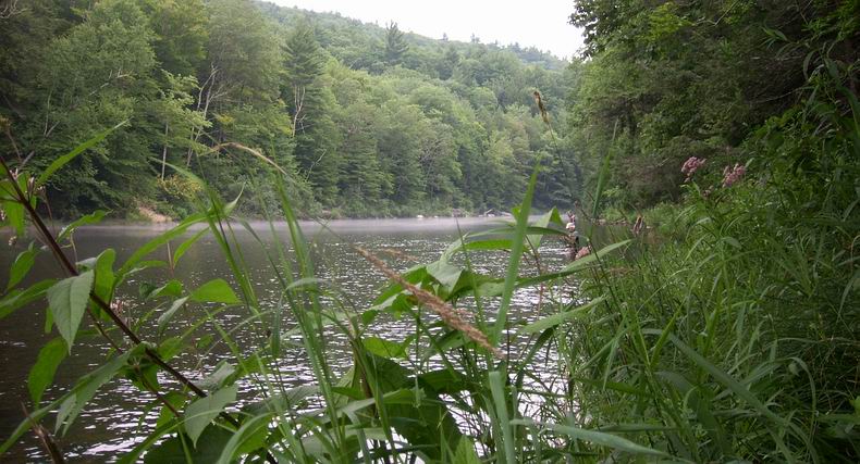 Was die Smallies sich im roten Bereich drehen lässt, ist für die Forellen eine Qual: die Hitze. Der Housatonic ist 240 km lang und wird dabei fünf mal gestaut. Dabei erhitzt sich das Wasser im Sommer auf bis zu 26°C! Ein Thermometer dabei zu haben ist klug, denn über 22°C sollte man die Forellen in Ruhe lassen. Der Drill wäre eine zusätzliche und unnötige Belastung, die zum Tode führen kann... <= ein Tag geht zu Ende |