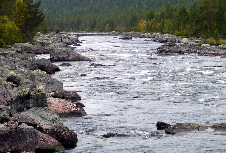 | Fluss der "Riesenkiesel" - am Femundselva ... Sehen Sie den kleinen Fliegenfischer links hinten ? |