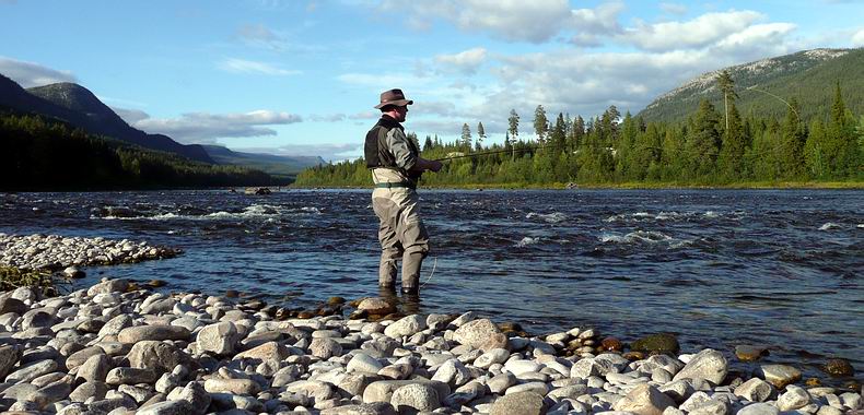 | Matthias in der Glomma - beim Befischen einer guten Stelle ... |