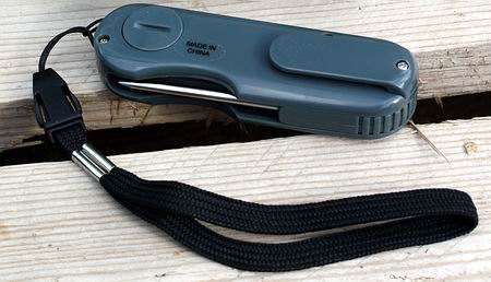 | Dazu gibt es ein Trageband mit Mini-Karabiner
