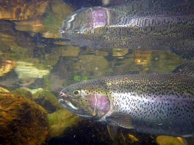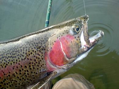 andere Richtung. Kurze Zeit später liegt eine 60er Regenbogenforelle