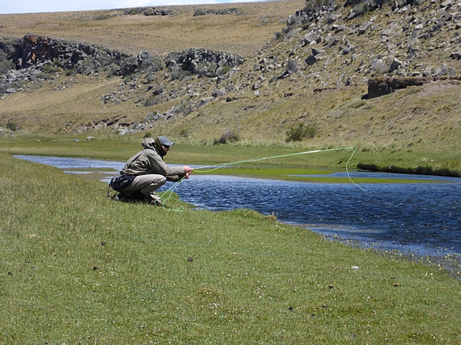 Der Rio Gallegos Der Fluss Rio Gallegos in der Santa Cruz Provinz, wer wird da nicht hellhörig? Nicht nur die Gilde der Historiker, denen wohlbekannt ist, dass der Namensgeber dieses Flußes, Blasco Gallegos einst ein Mitglied der bekannten Expedition des Ferdinand Magellan war. Von seiner Quelle bis zur Tidenregion, sich 300 Kilometer mäanderierend durch rauhes patagonisches Land windend, ist der „Gallegos“ das wohl außergewöhnlichste Salmonidenengewässer Patagoniens. Wenn auch eher bekannt durch den Meerforellenaufstieg, ist vielen Fliegenfischern nicht bewust: der Gallegos bietet mit seinen Quellen und zahlreichen kleinen Zuflüssen eine phantastische Forellenfischerei, die seinesgleichen sucht! Die nunmehr schon seit 100 Jahren sich selbstreproduzierenden Bachforellen haben sich zu einem aussergewöhnlich gesunden Bestand entwickelt, der ungleich anderer argentinischer Gewässer ohne jegliche Besatzmaßnahmen auskommt. Die übersichtliche Flussgröße und das einfach zu bewatende Gewässer bieten eine traumhafte Fischerei auf diese kapitalen und wunderschönen Fische. Noch dazu kommen die im patagonischen Frühjahr eher moderaten Windverhältnisse, verbunden mit guten Insektenschlüpfen in den frühen Morgen- und späten Abendstunden. Mit Trockenfliegen, Aufsteigern und Nymphen, an entsprechend angepassten Vorfächern angeboten, ist das die ausichtsreichste Jahreszeit, diese wunderschönen Bachforellen (und auch Meerforellen) zu überlisten. |