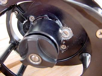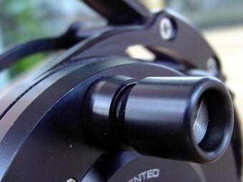 Interessante Antireverse und Übersetzungsrolle aus Aluminuim und Edelstahl, 6 Kugellager. Schwarz anodisiert, salzwasserfest. Raffinierte Technik - auf der Kurbelseite untergebracht. Beidseitig gelochte Schnellwechselspule. Normalkern- und Großkernspulen verwendbar. Gehäuse als geschlossener Käfig konzipiert. Als Schnurführung vorne 2 runde, schnurschonende Stege, hinten je 2 Stege für die variable Rollenfußbefestigung bei Links- und Rechtshandbetrieb (die Rolle ist entsprechend umbaubar). Zweifach von Außen geschraubter Rollenfuß. Große und griffige Kurbel, die nicht auf der Spule, sondern auf einer Getriebescheibe sitzt. Die zuverlässige Bremse auf Teflonscheibenbasis lässt sich mit einem sternförmigen Einstellrad auf der Spulenseite fein einstellen. |