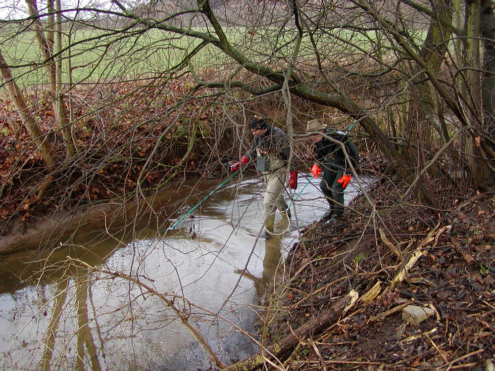 Anglerverein Ilmtal-Fliegenfischer e.V. Bad Berka Elektrobefischung unseres Aufzuchtbaches Schwarza im Herbst 2009 |