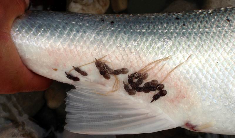 Lachs mit Meerläusen mit Eiersträngen (Foto: Manfred Raguse - International Flyfishers Club)