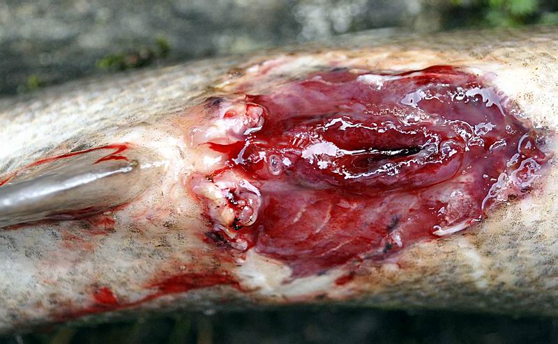 Schäden von Meerläusen (Foto: John Oystein Berg)