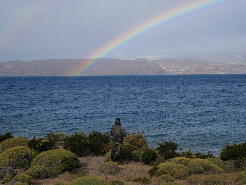 «Du weisst, ich habe noch diese Rechnung offen», bemerkte Carolina. Bei unserem letzten Besuch an genau dieser Stelle hakte Sie eine Regenbogen, die wir nicht zu Gesicht bekamen, es gelang ihr wohl den Fisch aus der Tiefe herauszudrillen aber als dieser Leviathan den grünen Saum der Abbruchkante überquerte zog er Carolina die 5er beinahe gerade und sprengte das Vorfach... noch dazu kommt, das die Fische hier ungewöhnlich spitz beissen und ein ordentlicher Anschlag notwendig ist. |