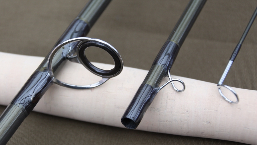 | Nähere Betrachtung und Praxistest: In Sachen Ausstattung und Verarbeitung lässt unsere Testrute keine Wünsche offen, ebenso wenig wie bei der gelungenen farblichen Zusammenstellung: einfach aber schick. Die dunkelolivgrüne Farbgebung der Rute im Verbund mit zartgrauen und Black Nickel Elementen empfinden wir als angenehm und dezent. Die Orvis Recon wurde sehr sauber beringt und lackiert, ihre Ausstattung ist sehr gut, ebenso wie die Gesamtverarbeitung, hinzu kommt ein umfassender Lieferumfang mit Futteral und schönem Alu-Rohr, alles farblich perfekt aufeinander abgestimmt. Der praxisgerecht geformte Full Wells Griff hat für diese Rute die richtigen Dimensionen und weist eine erstklassige Kork-Qualität (!) auf, er liegt sicher in der Hand und der leichte und dennoch sehr sichere Doppelmutter- Alu-Rollenhalter arbeitet leichtgängig und zuverlässig. Die Überschubverbindungen greifen ausreichend tief ineinander und halten die Rute sicher zusammen. Kleine Punktmarkierungen auf allen Rutenteilen erleichtern das schnellere Ausrichten beim Zusammenstecken der Rute. | ![]() |