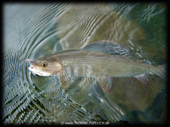 Äsche auf Griffiths Gnat gefangen - Kaitum Lappland, Nordschweden