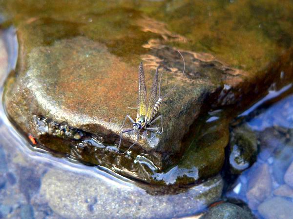 Fliegenfischen in der Slowakei: "Maifliege bei der Zwischenlandung". Mehr dazu gibt es u.a. im Reisebericht "