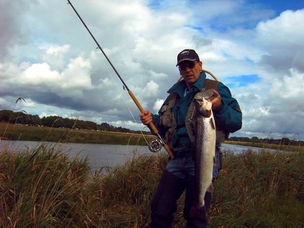 "... am 30.08.06 war ich mal wieder an der Skjern A: ein Lachs mit 77 cm und 4,3 kg..." (1/2). Foto und Copyright: Udo Czwalinna