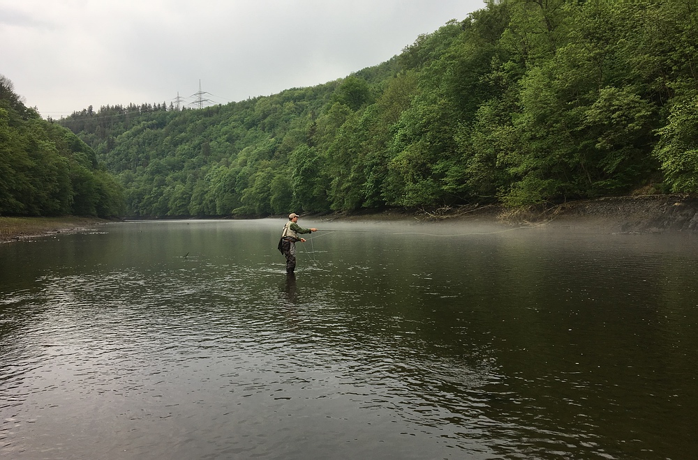 in den Stausee Walsburg, der als Salmonidengewässer ebenfalls in der