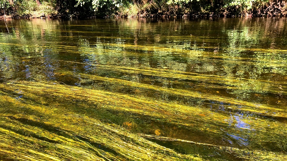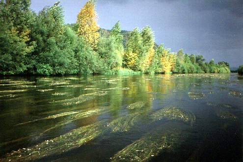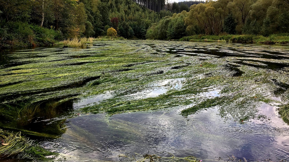 Kiesschotterbänken führt zu einem reichen Wasserpflanzenwuchs