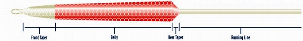 | Art / Aufbau: | Kleine Frontschlaufe. Spitzendurchmesser 1,06 mm. Zunächst kommt dier 1,10 m lange "Willow"-farbene Spitzensektion mit bis auf 1,64 mm ansteigendem Durchmesser. Es folgt die "Peach"-farbene Hauptkeule, welche über 3 m auf Werte im 2,12 mm ansteigt, dann 3,40 m bei diesem Durchmesser bleibt und schließlich mit einem 1,30 m kurzen Reartaper schnell auf den Durchmesser der Runningline mit 0,96 mm abfällt. "SAID"-Schnurtypen- und Klassenbeschriftung 30-35 cm nach Schnurspitze. |