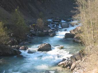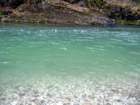 Im Bereich unserer Lizenzen fuhren wir die Savinja aufwärts, da sich direkt an der oberen Grenze ein Nebenfluss befand, der unberührt von der Schneeschmelze die die Savinja mit ca. 50cm mehr Wasser und milchig färbte, unberührt blieb. |