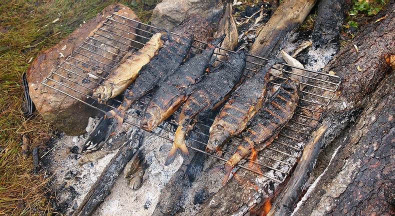 frischen Omul, Äschen und Rotaugen für eine kulinarische Vergleichswertung