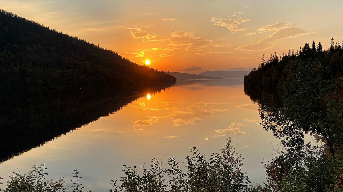 Schöne Morgenstimmung. Weiter geht die Fahrt ins südliche Lappland