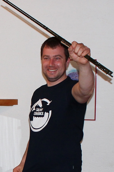 bei der Moritz Thomas den Hauptpreis (Hardy Marksman Kescher in Seeforellengröße