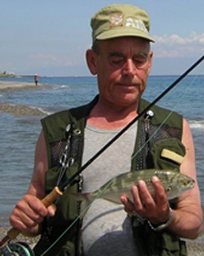 Der erste Angeltag kostete mich einen Sonnenbrand an den Schenkeln, wo meine Haut nach der Ankunft noch käseweiss war. Ich zog daher eine halblange Hose an. Dies war auch falsch, weil man sich dann am Abend, wo es kühler wird, in der nassen Hose eine Erkältung holt. Beim nächsten Mal nehme ich meine Wathose mit. Auf jeden Fall ist ein Schnurkorb unentbehrlich. Die starken Brandungswellen treiben die abgewickelte Schnur seitlich weg und bremsen den Wurf ab. Bei der Schnur hat sich die Intermediate bewährt. Die sinkende Schnur sinkt zu schnell und wird vom Wellengang so stark auf dem Meeresboden gerieben, dass sie beschädigt wird. Die schwimmende Schnur schwimmt keineswegs. Die hohen Wellen drücken sie runter. Man spürt den Anbiss nicht. Weil die Intermediate zuerst an der Spitze anfängt zu sinken, hat man doch größere Chancen, die Anbisse wahrzunehmen. Mit dem Anschlag sollte man sich etwas Zeit nehmen. Wie beim Plötzenangeln. Warten, bis die Schnur abzieht, erst dann den Anschlag – nicht zu heftig – setzen. Den Drill ohne Gewalt. Die Fische sind zwar nicht sehr groß, dafür quicklebendig und sie fahren mit einer rasenden Geschwindigkeit hin und her. Meistens parallel zum Ufer, wobei sie dann ihren flachen Körper ganz schön clever dazu nutzen, um Widerstand mit Hilfe der Brandung zu leisten. Lassen Sie ihren Hut zu Hause. Mit dem Hut auf dem Kopf werden Sie zwar wie ein richtiger Fliegenfischer aussehen, dafür weht an der Küste fast ununterbrochen ein böiger Wind, der Ihnen dieses Modeaccessoir weit ins Meer wegpustet. Ich habe mir eine Mütze gekauft. Und noch ein kleiner Rat: Nehmen Sie einen alten Lederhandschuh für die linke Hand mit. Die Fische haben sehr scharfe Flossen, an denen Sie sich ganz böse verletzen können. Ansonsten eine etwas steifere Rute um die 275 cm, Intermediate Schnur der Stärke # 8 und das Vorfach der Stärke 0,18 bzw. 0,20 mm. Für den Strand dieselbe Rutenlänge und auf dem offenen Meer bis zu 4 m lang. Hüten Sie sich davor, mehrere Köder anzubinden. Bei dem hohen Wellenschlag hat man schon genug Mühe damit, nur den einen Fisch ohne Vorfachbruch zu landen! Ausserdem sollte man dann jeden Abend das ganze Zeug gründlich von dem Salzwasser und feinem Sand abspülen. In der Wathose werden Sie zwar nicht so braun, wie auf dem Hotelstrand, dafür werden Sie herrliche Fische und schöne Erlebnisse haben. Ci rivedremo quest´altro anno, Sicilia! Jaromir Knorre Etwas Italienisch für den Anfang: pesca –