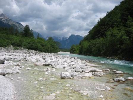 | Da war sie nun, die Soca, ein Fluss wie in einem Anglertraum. Das smaragdfarbene Wasser kämpft sich durch das Tal und ändert permanent seinen Charakter. Mal dreißig Meter breit und im nächsten Moment auch schon auf fünf Meter komprimiert. Sie peitscht sich durch eine in Jahrtausenden eingewaschene tiefe Spalte, donnert über und zwischen riesigen Gesteinsbrocken hindurch, um im nächsten Augenblick wieder ihren Frieden zu finden, nun rauscht sie wieder mal tiefer, mal breiter vor sich hin. Wahnsinn, ein echtes Naturschauspiel, in einer Kulisse, die ich nie wieder vergessen werde. Wer in dieser Region einmal sein sollte, dem empfehle ich einen Abstecher ins Soca-Tal. | ![]() |