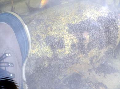 Nach längerer Fahrt war es soweit. Hinter den Bergen schön versteckt in den Tälern der Wälder haben wir ihn nun entdeckt. Das, was mir gleich auffiel, war das saubere Wasser und entlang des Baches die aus dem tiefen Winter langsam aufwachende Fauna: unzählige verschiedene Arten an Schmetterlingen, Froschen, Vögeln und Schlangen. Selbstverständlich auch der Fisch war vertreten. |
