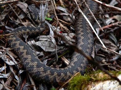 | Köcherfliegeninvasion | Eine Kreuzotter - ein schöner aber auch gefärlicher Uferbewohner (solche Begegnungen sind leider sehr selten) |