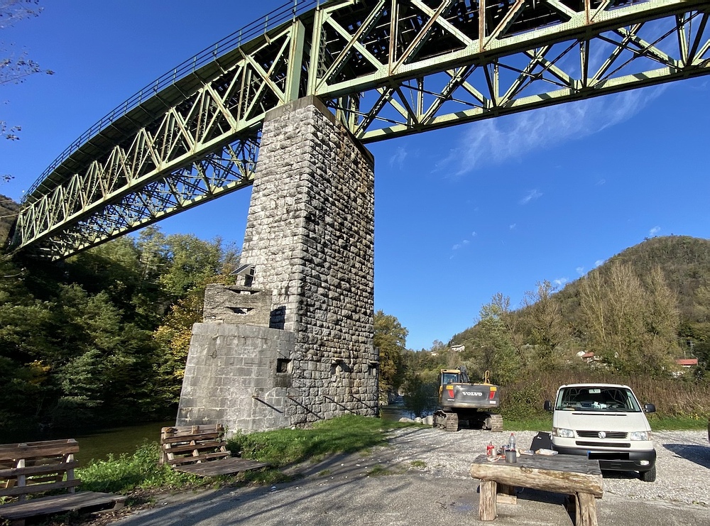 | Über den Pass vorbei an alten Festungen aus dem 1. Weltkrieg wie dem Fort Kluže, ging es entlang der Koritnica über das Viadukt Mangart ins Soca-Tal. |