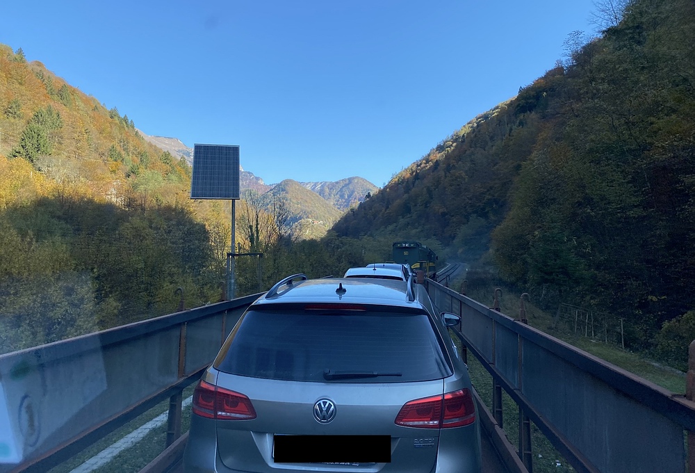 Für den ersten Teil der 2 ½ stündigen Strecke nutzen wir den Autozug ab Most na Soci. Die Zugfahrt führt entlang des Flusses Baca in den Norden bis nach Bohinjska Bistrica, bietet eine tolle Erfahrung und man erspart sich einen deutlichen Umweg mit dem Auto. Bis nach Bled sind es dann noch gerade einmal 20 Minuten mit dem Auto. |