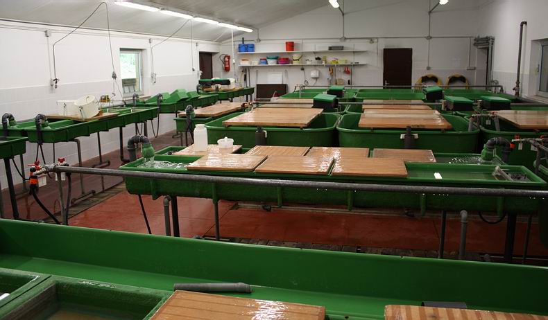 Die äußerlichen Unterschiede beider Äschen-Stämme sind sicher kaum feststellbar, jedoch gibt es eindeutige genetische Unterschiede, die in wissenschaftlichen Untersuchungen festgestellt wurden. Heute wird in aufwändigen Verfahren im eigenen Bruthaus (welches für unsere Verhältnisse gigantisch groß ist...) Eier von adriatischen Äschen abgestreift, befruchtet, erbrütet, angefüttert und in den Gewässern ausgesetzt. Da die Äschenerbrütung und erste Ernährung der Brütlinge ausgesprochen schwierig ist und nur in wenigen Fischzuchtbetrieben überhaupt gelingt, wurde hier viel Geld in die Hand genommen, internationales Know-How zusammengetragen und im eigenen Bruthaus technisch umgesetzt und perfektionisiert. Das Basimaterial und das technische Wissen für die eigene Anzucht des für die Brut-Ernährung benötigten lebenden Zooplanktons stammt beispielsweise aus den USA. |