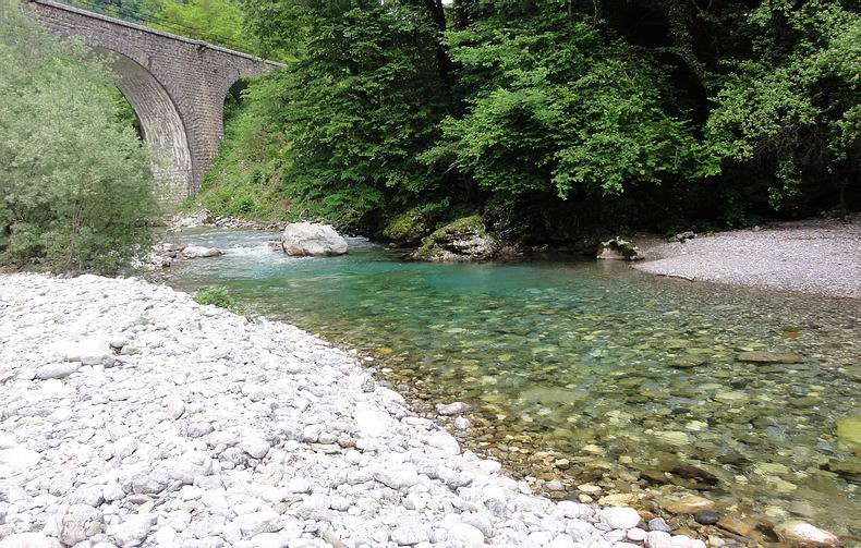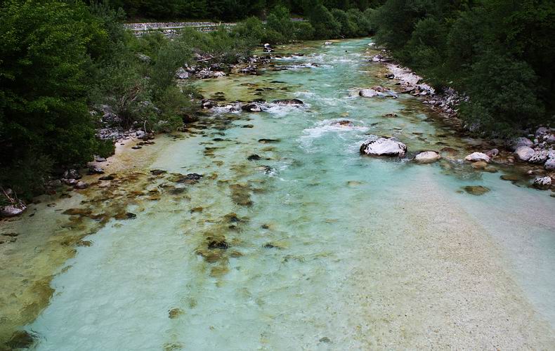 | An der Soca kurz unterhalb der Klamm bei Soca |