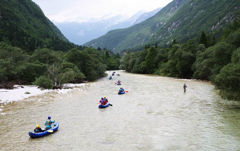 Dazu kommen in den Sommermonaten tagsüber und vorwiegend auf der Soca eine Menge Kanuten und Raftingboote, die manchmal einzeln, manchmal in Gruppen und vor oder hinter der Rute vorbeipaddeln... Wer