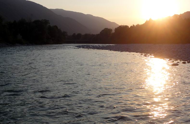 | Abendstimmung an der Soca oberhalb von Tolmin |