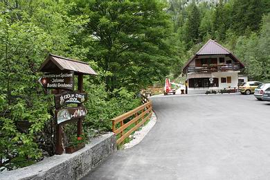 | Ausflugstipp: die Soca Quelle (oberhalb von Trenta)... | ... mit Gasthaus an der "Basis-Station" |