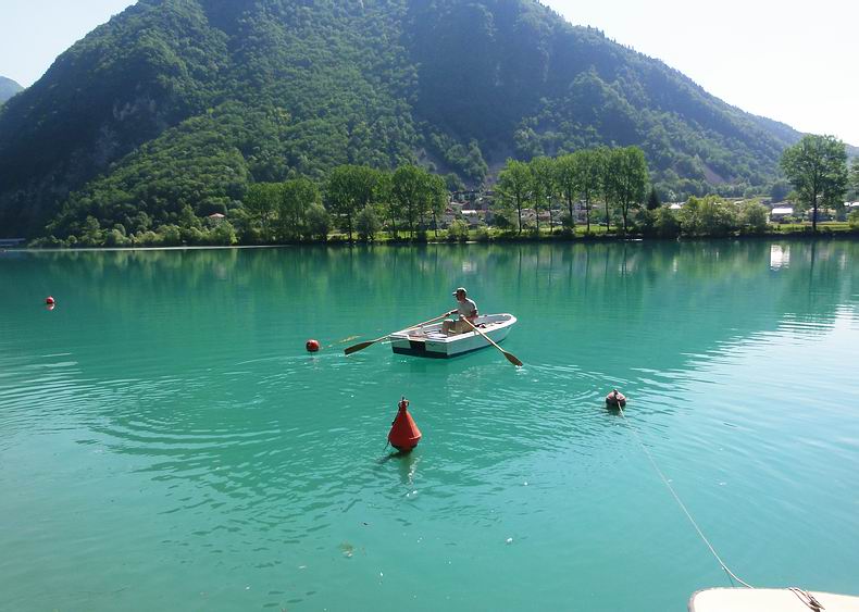 | Der herrlich blaue Soca Stausee bei Most na Soci - die Heimat von Marmoratas, Regenbogenforellen, Äschen und andere Fischarten... |