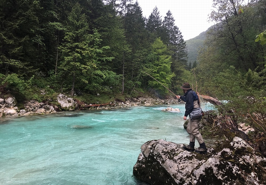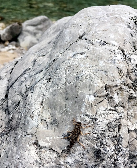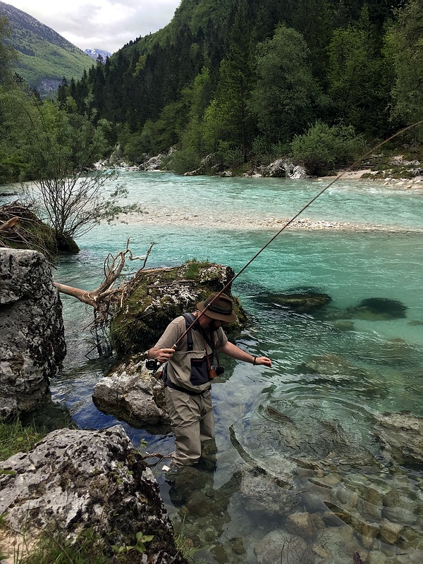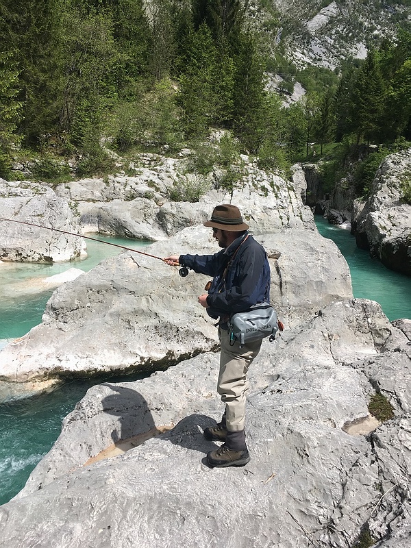 Wir machten an diesem Tag ordentlich Strecke an der Soca und suchten die Fische bzw. die befischbaren Stellen. Die Wege an der Soca entlang sind sehr schön aber zugleich teils schon sehr anspruchsvoll. Hier ist es wichtig, dass man echt eine qualitativ hochwertige Ausrüstung hat. Was ich als genial dort empfand, waren meine Watschuhe mit Vibram und Spikes Sohle. Hier ist gutes Schuhwerk gefragt! |