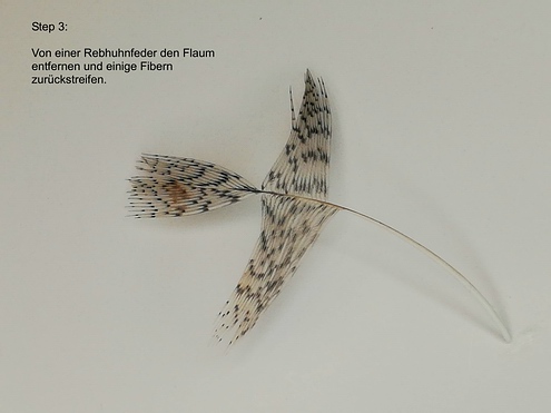 Eine Rebhuhnfeder vorbereiten: Flaum entfernen,