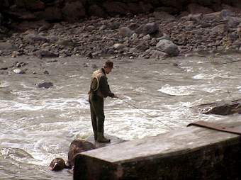 | Rechts: Ulli Bussmann beim Fischen.