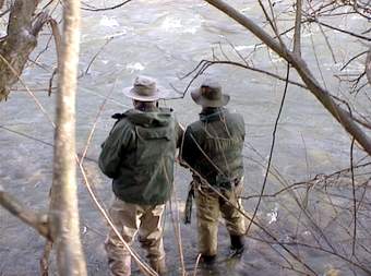 Unten links: und dann in meinen Händen... Unten rechts: Aus guter Deckung kämpfen Ulli und Olli gegen den starken Wind. So liebe Freunde des Fliegenfischens,
