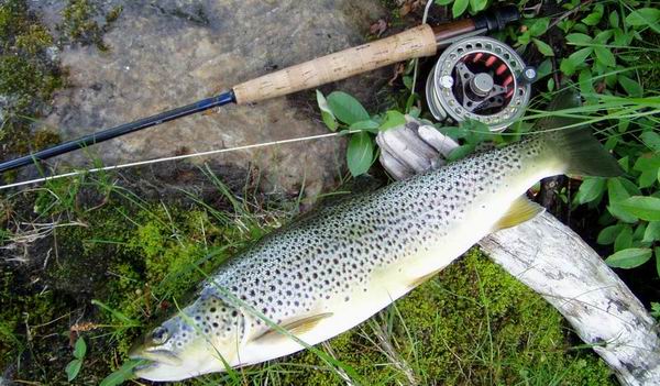 "Bergforelle" mit typischer Zeichnung. Sie nahm Trocken im letzten Licht