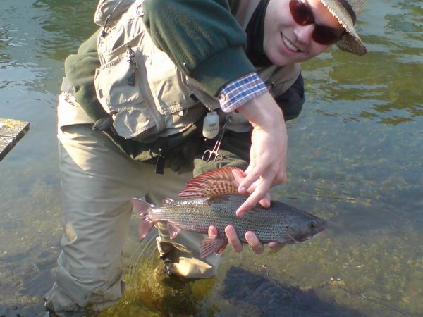 Schöne Äsche aus der Moosach bei Freising mit 18er Nymphe