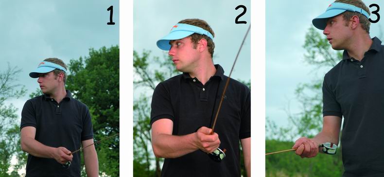 Wie schon in der Gewässersituation beschrieben, ist der Snap Cast die prädestinierteste Anhiebsmethode für Trickwürfe, bei denen mit Leerschnur bzw. ungestreckter Schnur gearbeitet wird. Solche Trickwürfe haben die negative Eigenschaft, dass ein Anhieb, bei dem die Rute lediglich angehoben wird, den Haken im Fischmaul oftmals nicht zum Fassen bringt. Der Snap Cast erlaubt jedoch in dieser Situation eine Energieübertragung bis zur Fliege. |