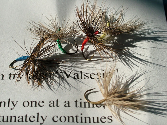 Traditionell werden meist sehr einfache Weichhechelnassfliegen gefischt. Auffallend ist, dass sich sowohl in Japan, als auch in Italien fast die gleichen Fliegen entwickelt haben. Die japanischen Fliegen nennen sich übrigens „Sakasa Kebari“, die italienischen werden von den Einheimischen „Mosca Valsesiana“ genannt. Im Buch von Malcom Grennhalgh „Das komplette Handbuch Fliegenfischen & Fliegenbinden“ findet ihr Muster unter dem Namen „Valsesiana“. Die Italiener binden dieses Muster auch heute noch traditionell ohne Bindestock, Bobbin, Hechelklemme und Knotenbinder in der Hand. |