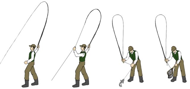 Der Wurf erfolgt ähnlich dem Wurf mit der normalen Fliegenrute. |