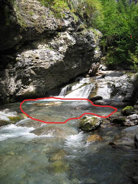 Gewässersituation / Verwendungsbereich Der Bucket Cast ist dafür geeignet, größere strömungslose Gewässertaschen, die von sehr stark strömendem Wassern umgeben sind, zu befischen. Des Weiteren ist dieser Trickwurf prädestiniert für das Befischen von Poolausläufen, die sich von relativ langsam strömendem Wasser in eine schneller strömende Rieselstrecke wandeln. Gewünschtes Präsentationsergebnis Je nach dem, wie der Bucket Cast durchgeführt wird, können bis zu einigen Metern Flugschnur an einer bestimmten Stelle des Gewässers knäuelmäßig abgelegt werden. Das Wurfergebnis sollte so sein, dass das Vorfach inkl. eines gewünschten Teiles der Flugschnur im ruhigen Wasser des Pools gestreckt abgelegt wird. Der verknäulte Flugschnurteil sollte beim richtig durchgeführten Bucket Cast an der Strömungskante zwischen ruhigem und schnellem Wasser zum Erliegen kommen. Die schnelle Strömung greift nun in die Flugschnur hinein. Die Fliege bleibt solange ohne Furchen im Sichtfeld des Fisches liegen, bis die Strömung es geschafft hat, das Knäuel auseinander zu ziehen. |