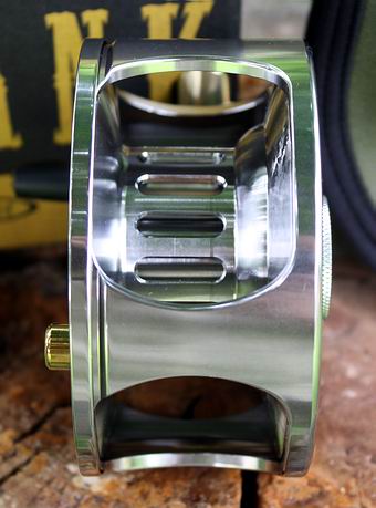 | Im Betrieb lässt die TANK bei Schnurabzug eine kräftige Rätsche hören, sozusagen einen "satten Sound" (lässt sich bei Bedarf auch abstellen). Das Schnur-Einholen erfolgt dagegen lautlos. Der Spulenwechsel geht mit Hilfe des klassischen Einhebelsystem schnell und einfach. Die Schnurkapazität der Rolle ist sehr gut und für die Rollengröße angemessen. Die TANK 4 besitzt eine breite "Mittelkern"-Spule mit hohem Fassungsvermögen und die geschätzten Vorzüge von Groß- und Mittelkern-Fliegenrollen, z.B. einen geringen Anlaufwiderstand, einen stets relativ gleich bleibenden Abzugswiderstand und eine rasche Schnuraufnahme. Die Größendimension und das Gewicht der Rolle im Verhältnis zur vorgesehenen Schnurklasse und den Einsatz an den entsprechenden #8-11er Zweihandfliegenruten empfinden wir als gut passend und stimmig. |